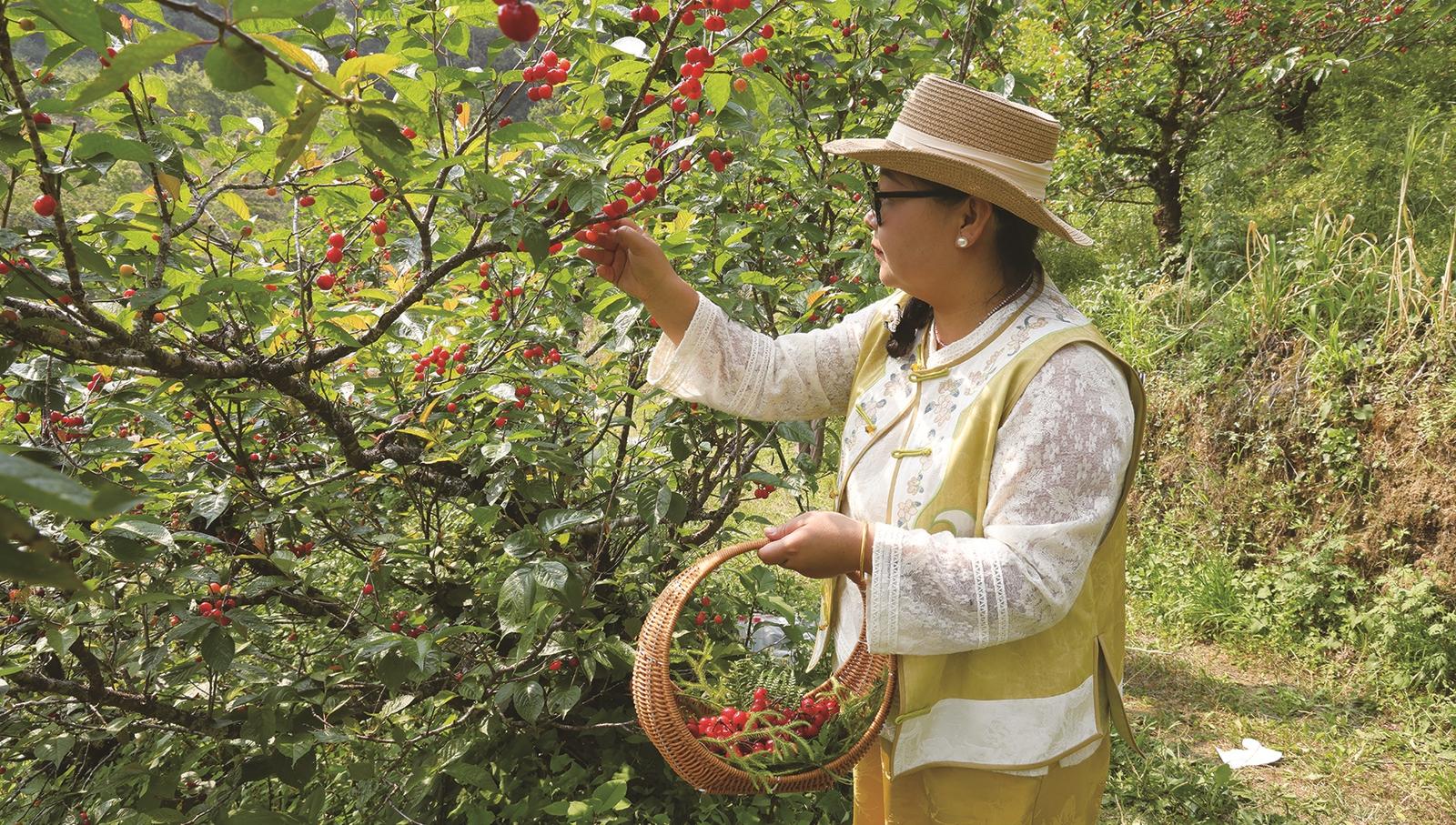 近年来,永德县立足生态优势,持续加大特色果蔬种植扶持力度,不断扩大种植规模、提升产品品质,加快特色农业与乡村旅游深度融合,助力乡村产业提质增效。图为德党镇樱桃成熟上市,游客在果园采摘。