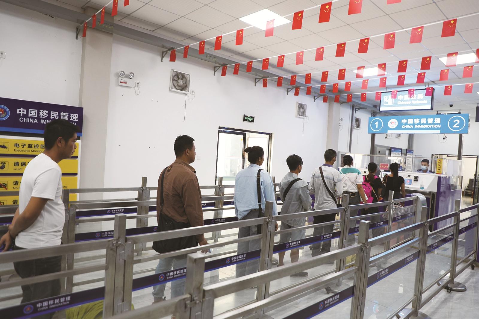 清晨,孟定清水河口岸联检大厅灯火通明、人头攒动,通关通道有序运行,边民李小琴在短短3分钟内就完成了全部通关流程。
