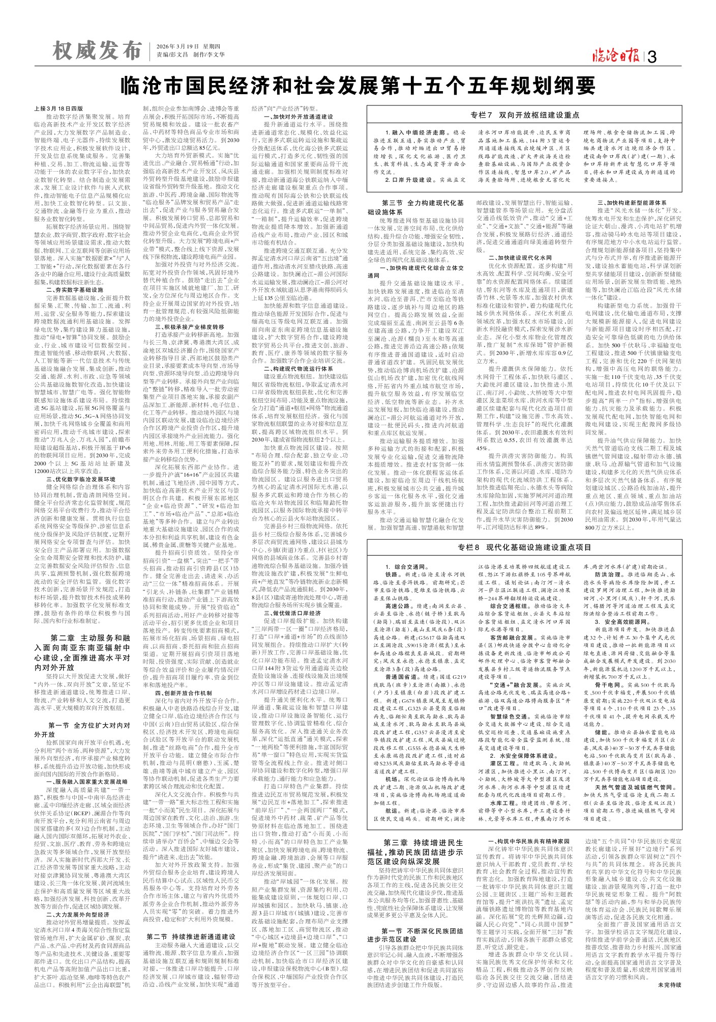 临沧市国民经济和社会发展第十五个五年规划纲要