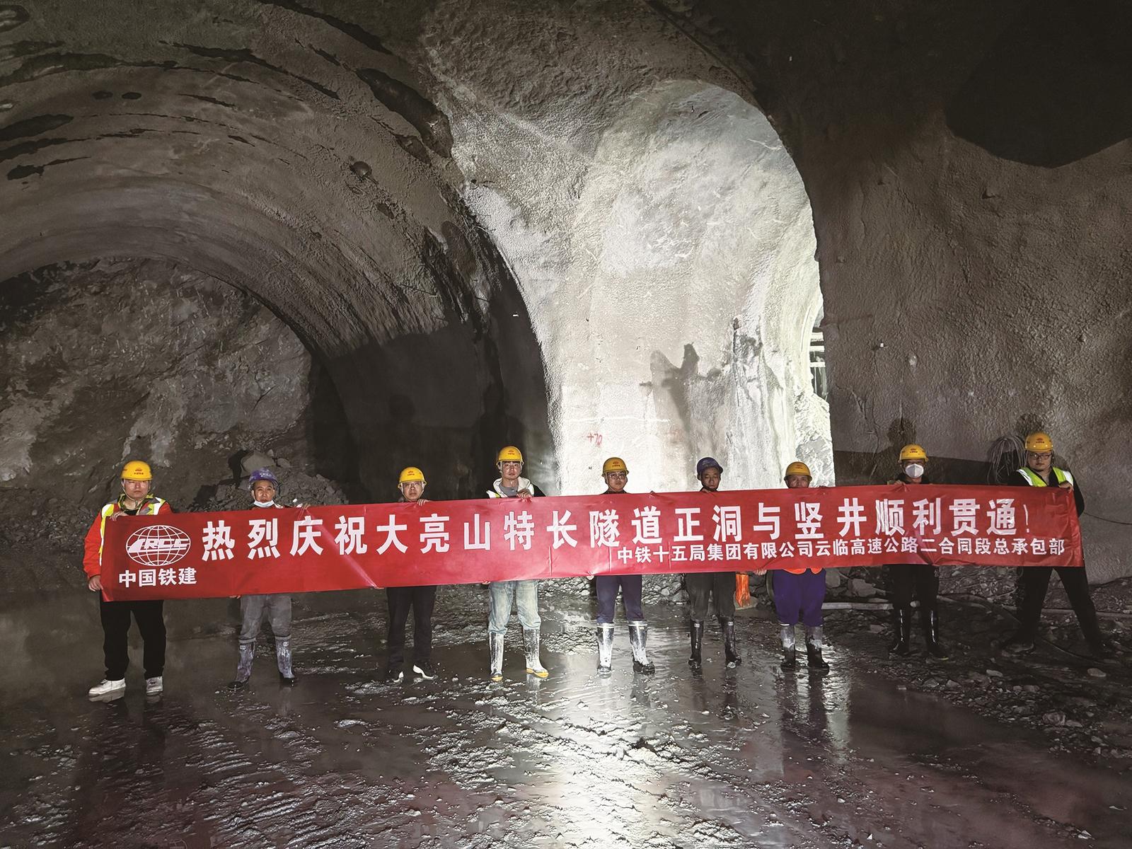 图为云临高速公路大亮山隧道正洞与竖井贯通现场。