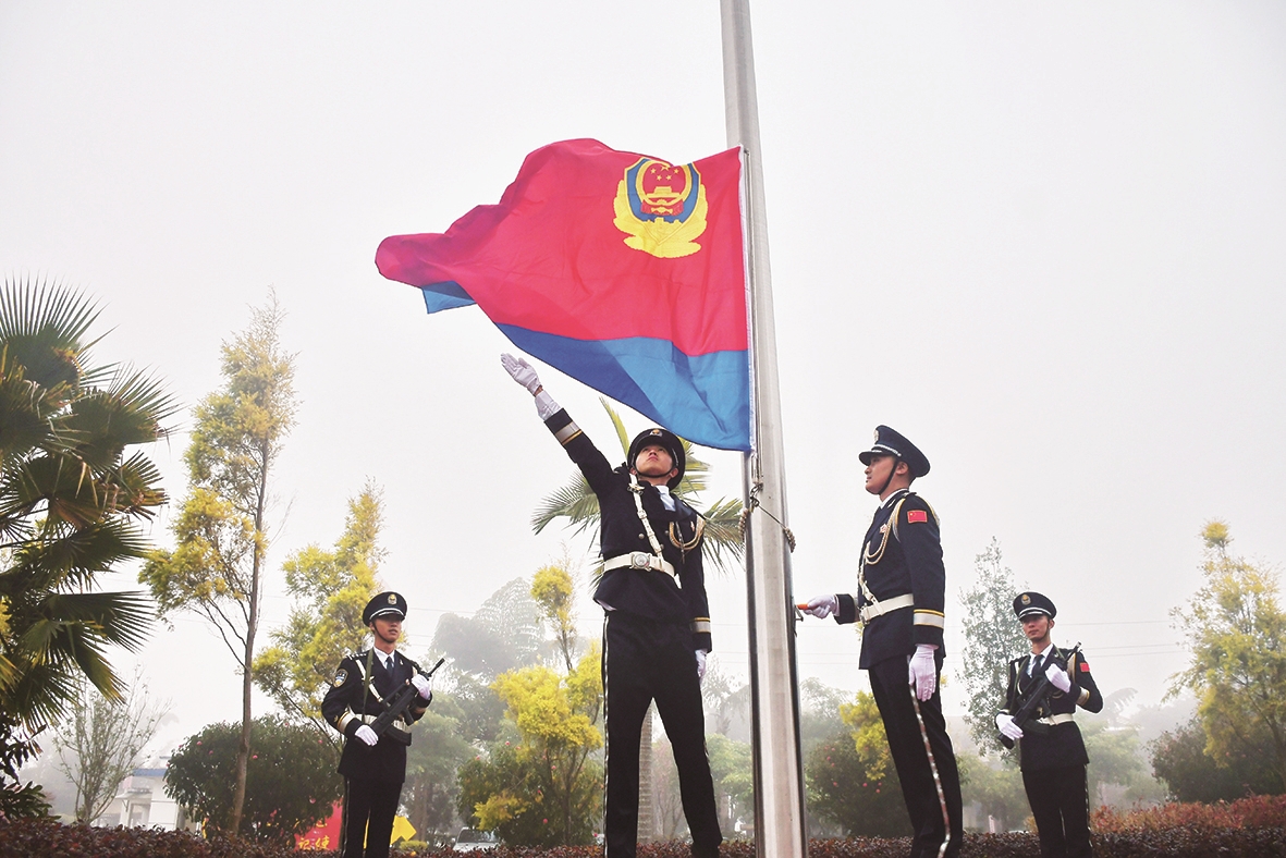 沧源佤族自治县公安局举行升警旗仪式。王云东 摄