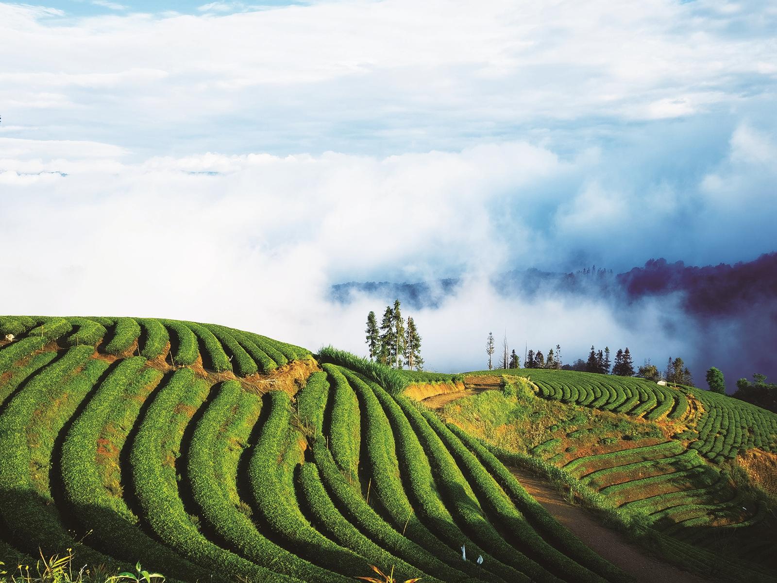 近年来,耿马傣族佤族自治县依托自然资源优势,着力打造茶旅精品线路、茶旅精品园区、茶旅特色小镇,开发茶旅融合新业态。图为茶垄叠翠的芒洪乡细嘎组茶园。