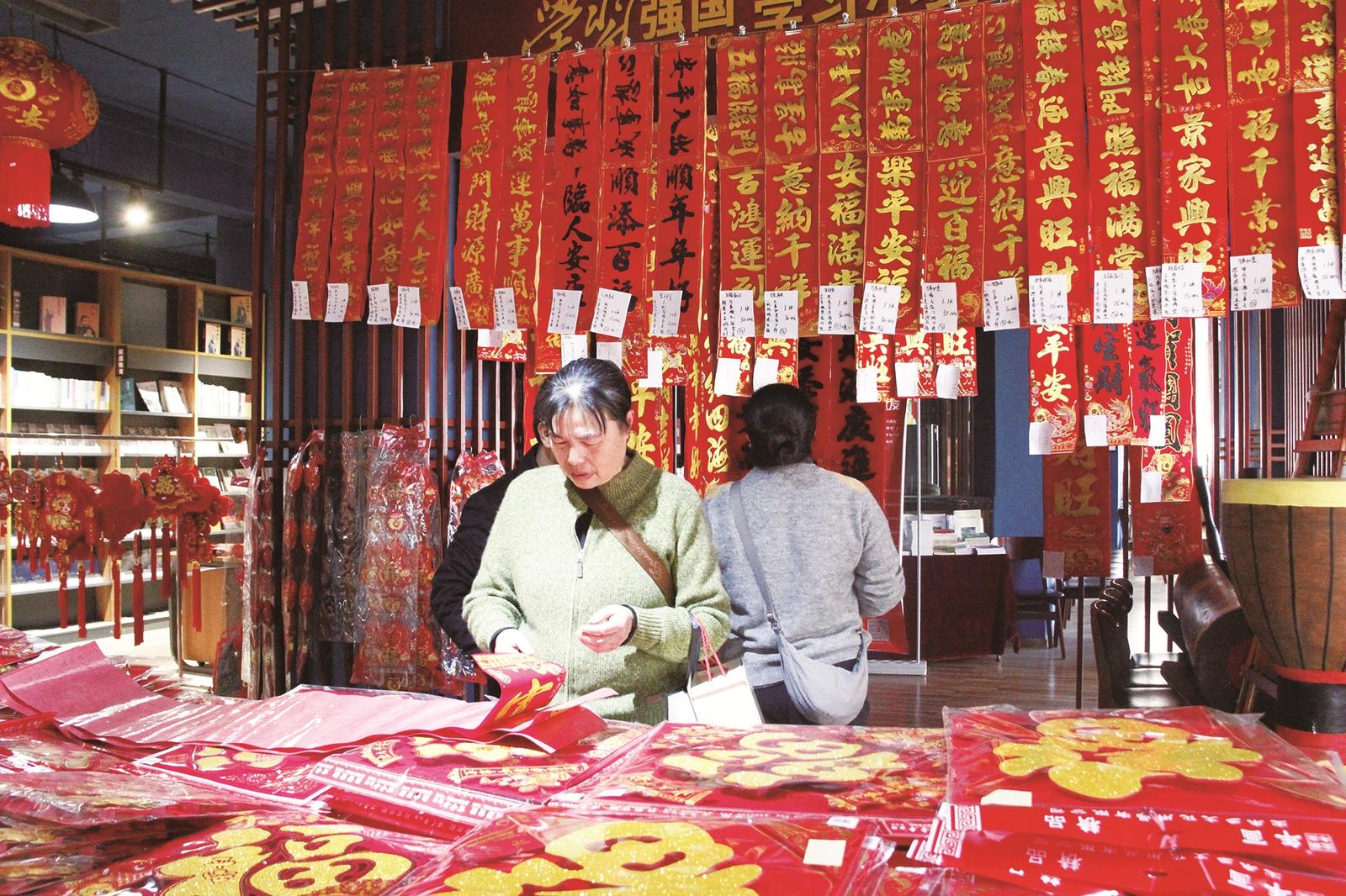 顾客在挑选新春对联。