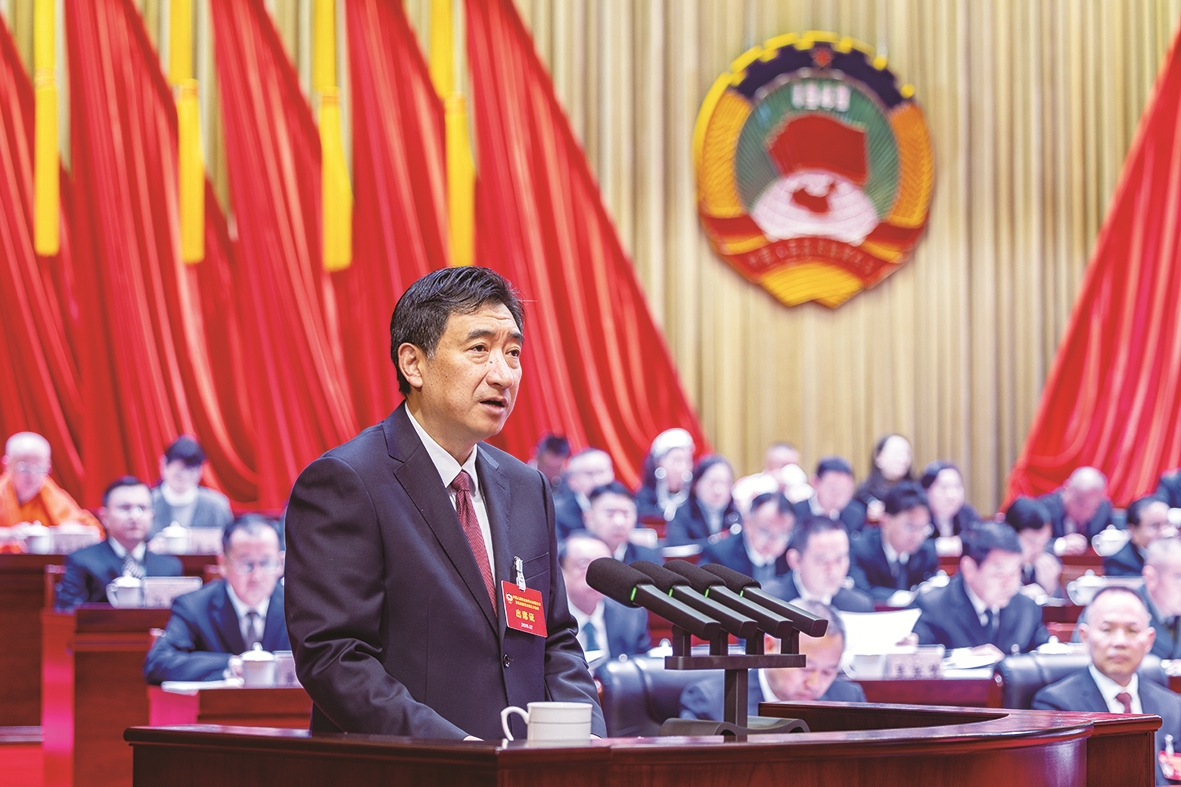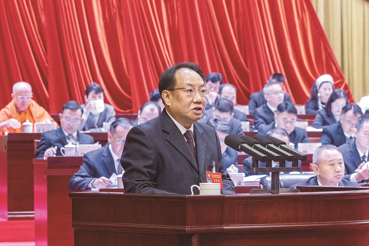 李银峰代表政协临沧市第五届委员会常务委员会向大会报告工作。 程江 摄