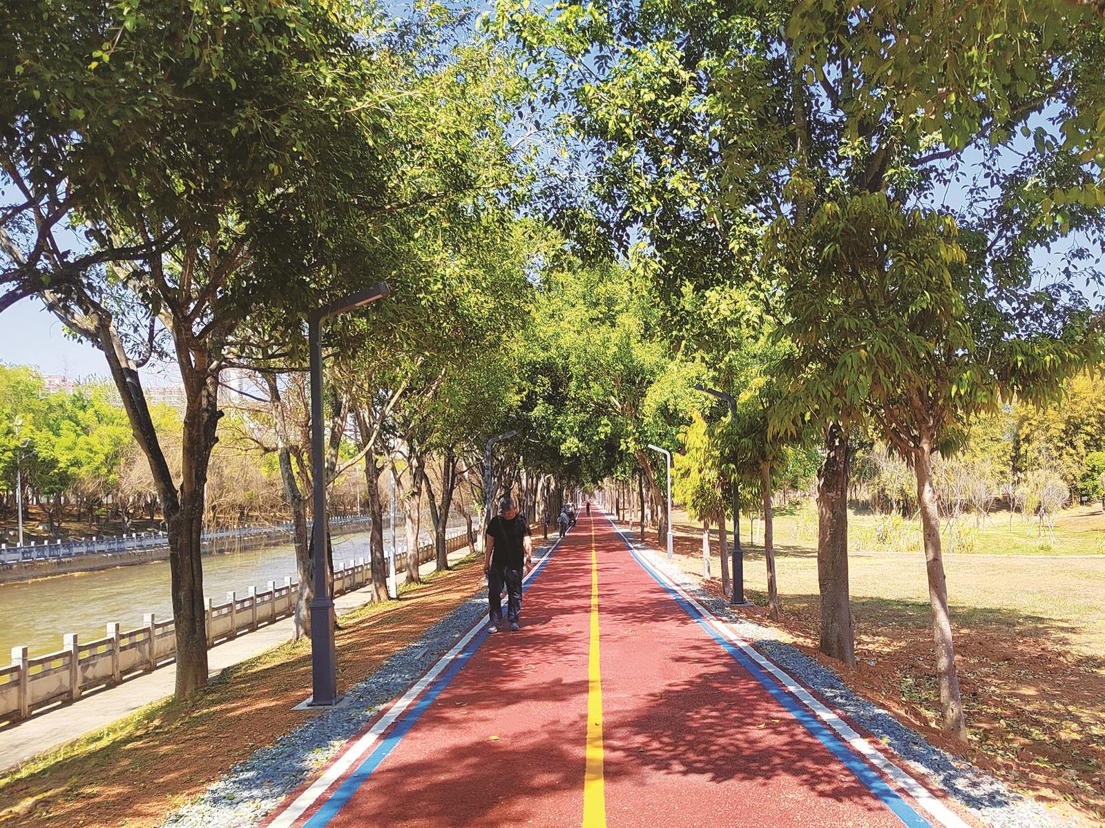 傍晚时分,夕阳的余晖将南汀河染成暖金色,市民施波像往常一样,带着家人出门溜达。脚踩在刚刚铺好的彩色步道上,看着孩子在前头蹦蹦跳跳,她忍不住掏出手机定格下这温馨的瞬间:“这段时间变化太大了,河边灯光亮了好多,路面重新铺过,特别光滑平整,走起来心情都跟着敞亮。现在每天吃完饭就想带着家人出来散散步、拍拍照。”施波镜头里的美好画面,正是临翔区南汀河城市森林公园配套服务经营项目建设的其中一点。