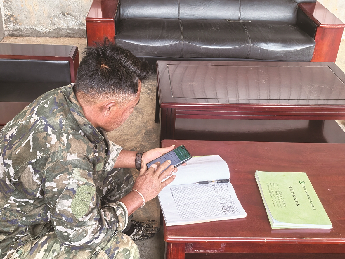 管理员用手机查看育苗棚数据。 顾少龙 摄