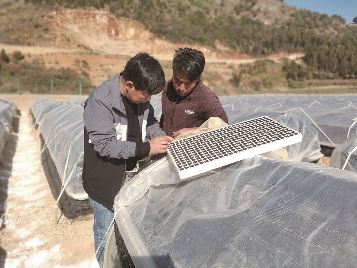 在沧源县各育苗工场,机械化播种设备成为育苗场上的主力军,工人们操作育苗播种一体机,基质装盘、压穴播种一气呵成,行距株距控制精准,确保每粒种子都有均等生长空间。